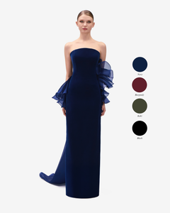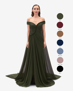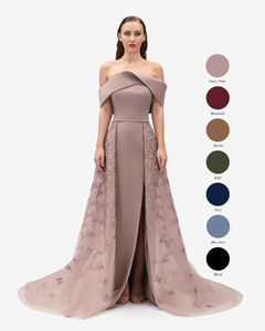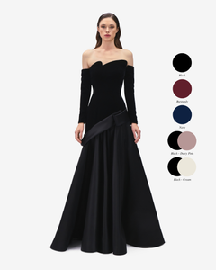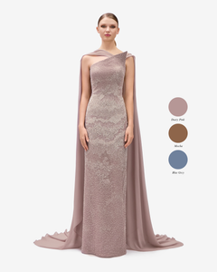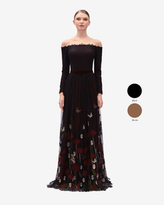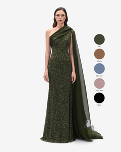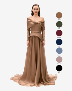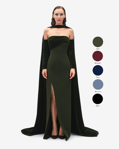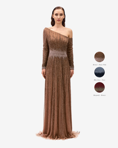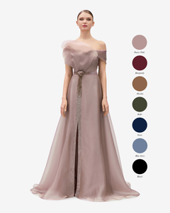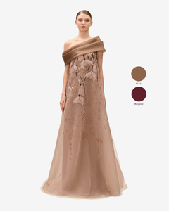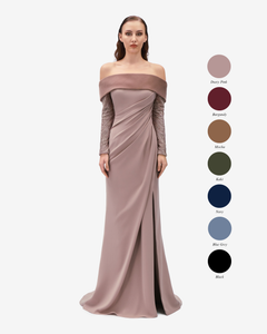 Off The Shoulder Draped Dress with Beaded Sleeves