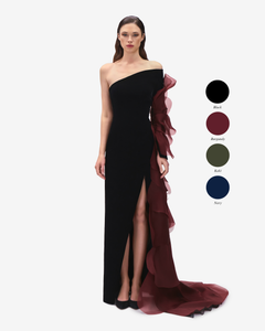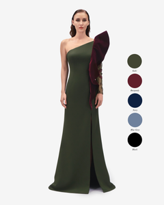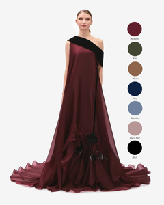 Asymmetrical One Shoulder Coquelicot Organza Dress