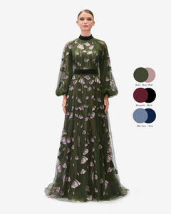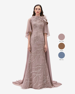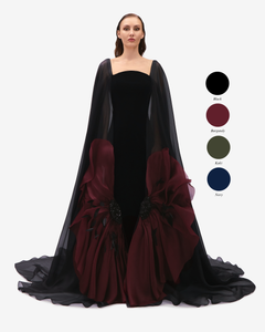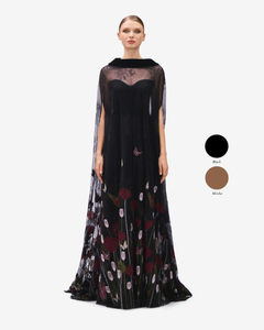 Embroidered Flowers And Butterflies Lace Cape And Dress