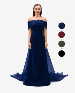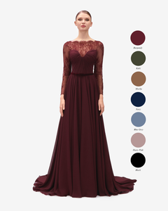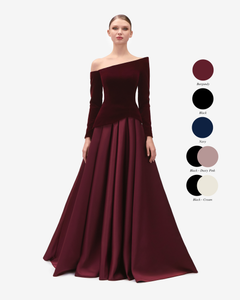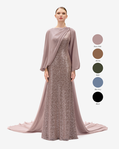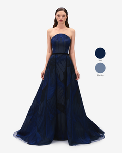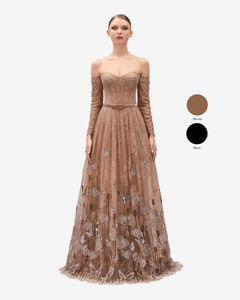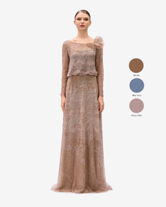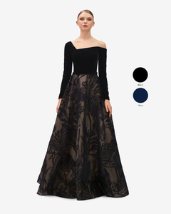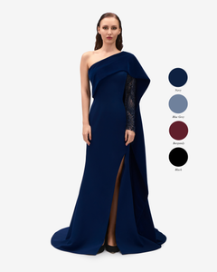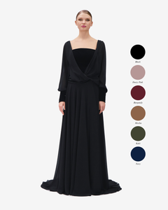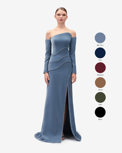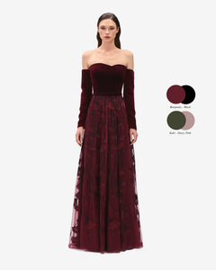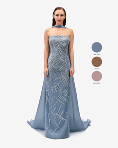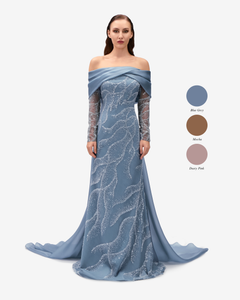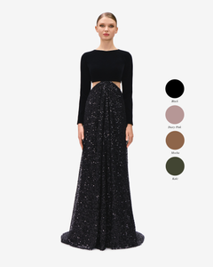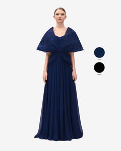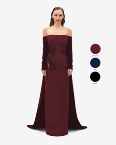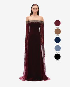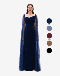 Waves Velvet Dress with Batwing Hand Beaded Sleeves