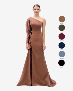 Asymmetrical One Shoulder Dress with Flowers Detail