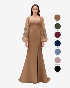 Scoop Square Dress with Bishop Embroidered Sleeves